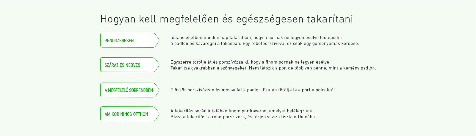 Ezért a Robzone kifejlesztett egy Health Concept robotporszívó-sorozatot, amely az egészséges higiénikus tisztításra van felszerelve, amely megkönnyíti munkáját, és egészségesebb és kellemesebb környezetet biztosít otthonában.