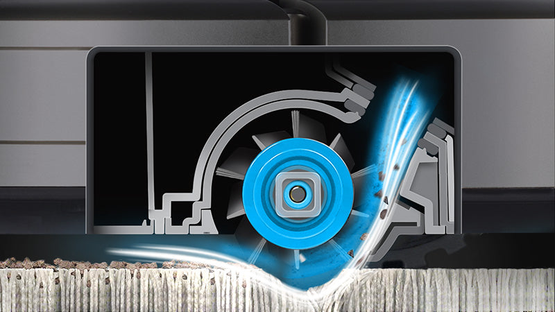 Az ügyesen lezárt szívókamra lehetővé teszi a levegő behatolását a szőnyeg rostjai közé, és még a mélyen lerakódott szennyeződéseket és port is felszívja. A szívóerő csaknem megduplázódik, így lényegesen nagyobb hatást ér el a szőnyegeken és a sima padlókon.