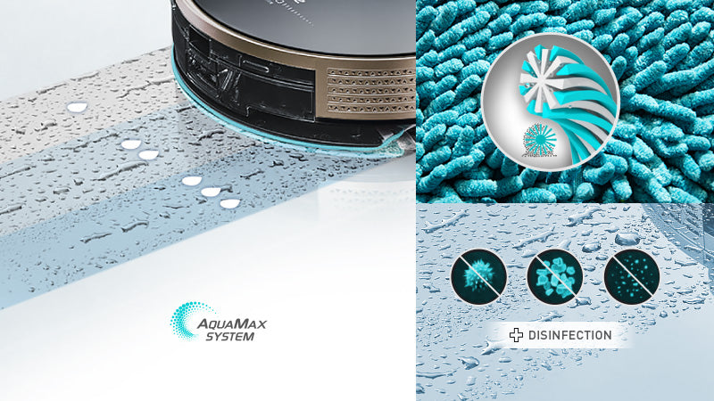 Az egyedülálló Aquamax rendszer jelentősen javítja a törlés minőségét. A speciális felmosórongy osztott mikroszálas Addsorb Fiber szálból készül, amely a hagyományos textíliákhoz képest sokszor több szennyeződést képes megkötni. A szennyeződéseket a szálak belsejébe zárja, és csak tiszta vizet enged a felszínre. Öblítés nélkül nagyobb területet is képes megtisztítani. Az elektronikus vízadagolás lehetővé teszi, hogy a szennyeződés típusának megfelelően állítsa be és mosson. Az Aquamax tisztító használatával minden szennyeződést eltávolít, beleértve a baktériumok, vírusok és gombák 99,9%-át. Ráadásul a tisztítás után nem csak a padló, hanem az egész otthona illatozni fog.