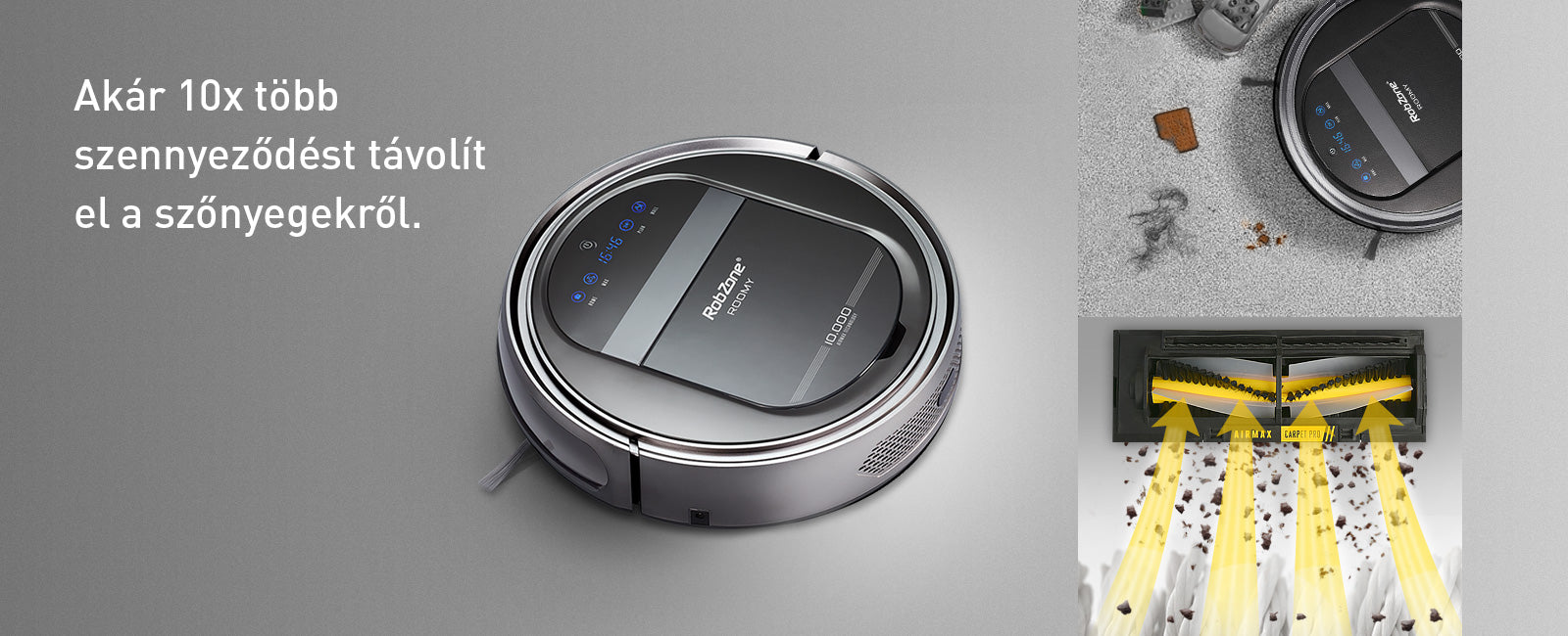 A ROOMY EXPERT PROFI forradalmat hoz a szőnyegtisztításban. A Robzone által kifejlesztett egyedi porszívófejnek köszönhetően az Airmax Carpet Pro kétfázisú porszívó darab és teljes felületű szőnyegek igazán mélyen és a hagyományos porszívókkal összehasonlíthatatlanul szőnek. Gyorsan és szisztematikusan tisztít. Tudja, hol takarított már, és mikor végzett. Az érzékeny ultrahangos lökhárítónak köszönhetően tökéletesen navigál az űrben, és minden akadályt felismer. Telefonján online követheti a tisztítás útvonalát, így mindent kézben tarthat, bárhol is van.