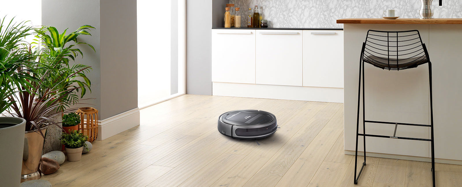 A Roomy Solo egyidejűleg porszívózza fel a morzsákat és a sima padlót. Válassza a száraz törléssel történő porszívózást, és jelentősen csökkenti a port az egész otthonban.